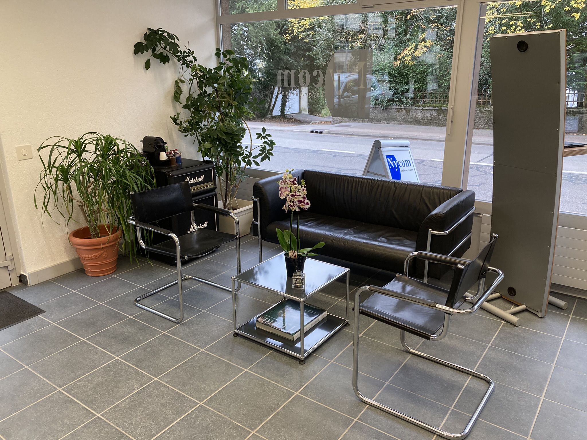 Sur cette page vous trouverez diverses illustrations du magasin, du showroom et du véhicule d'intervention sur site. Nous sommes situés à la route de St-Cergue 15 à Nyon, à proximité du parking du Martinet. 2 places visiteurs sont également disponibles juste devant notre porte, sur le chemin du Canal.